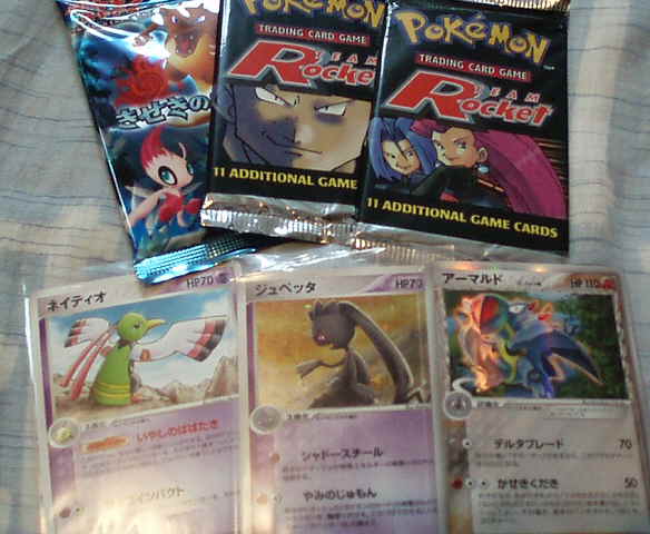 写真下3枚(左からネイティオ、ジュペッタ、アーマルドδ)と